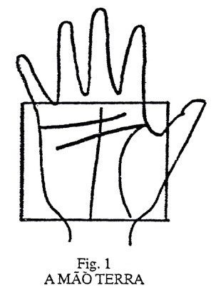 MÃO TERRA - Mão quadrada com dedos curtos e poucos traços em sua palma. Indica temperamento passivo e amigo das plantas, dos animais e da Natureza. Mão de pessoas inteligentes, sólidas, estáveis, criativas, ciumentas e de caráter realista; gostam de uma vida rotineira e organizada, mas é do tipo rueiro, odeia ficar trancada em um lugar por muito tempo. Preocupam-se facilmente. Têm predisposição a problemas intestinais, doenças de pele e problemas de gengivas, coluna vertebral e nas articulações. Tem carência de cálcio, vitaminas C e D, além de magnésio, que provoca a deterioração dos dentes e o enfraquecimento dos ossos. Ervas indicadas: confrei e uvas; Minerais: cloreto de magnésio e cálcio.